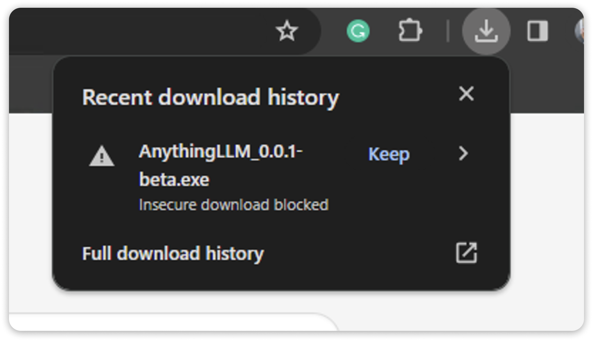 인터넷 브라우저는 보안 설정에 따라 TeamplGPT 데스크탑 앱을 다운로드하고 실행할 것인지 확인할 수 있습니다.